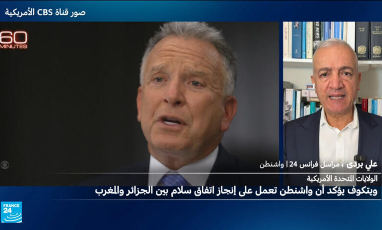 في برنامج ستون دقيقة على قناة سي بي أس الأمريكية، أعلن ستيف ويتكوف مبعوث الرئيس الأمريكي دونالد ترامب إلى الشرق الأوسط أن فريقه يواصل جهوده للتوصل إلى اتفاق سلام بين الجزائر والمغرب خلال ستين يوما.