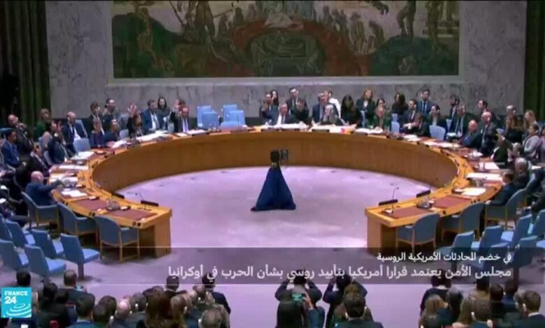 اعتمد مجلس الأمن الدولي الإثنين بتأييد روسيا مشروع قرار أميركي يدعو إلى إرساء سلام في أوكرانيا في أسرع وقت ممكن، لكن من دون أن يتضمّن أيّ إشارة إلى وحدة أراضي هذا البلد، رغم تحفّظات حلفاء كييف الأوروبيين.