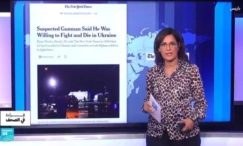 في الصحف اليوم: محاولة اغتيال الرئيس الأمريكي السابق والمرشح الجمهوري  للانتخابات الرئاسية دونالد ترامب. من هو المشتبه به الذي ألقى القبض عليه مكتب التحقيقات الفيدرالي؟ في الصحف أيضا: صاروخ حوثي يسقط وسط إسرائيل. لماذا فشل الجيش الإسرائيلي في تدمير الصاروخ قبل دخوله المجال الجوي الإسرائيلي رغم منظومته الدفاعية المتطورة؟ في لبنان مخاوف من توسع دائرة الحرب بين حزب الله وإسرائيل. المستشار الألماني أولاف شولتز في أوزبكستان والهجرة هي محور الزيارة.