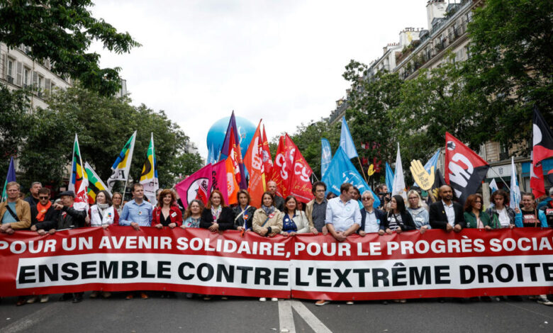 تشهد العاصمة باريس وكبرى المدن الفرنسية السبت مظاهرات يرتقب أن يشارك فيها عشرات الآلاف ضد اليمين المتطرف الذي يتصدر نوايا التصويت في الانتخابات التشريعية التي تنظم دورتها الأولى في 30 حزيران/يونيو ودورتها الثانية في 7 تموز/يوليو. وتأتي هذه المظاهرات بدعوة من النقابات العمالية واليسار الفرنسي الذي وحد صفوفه تحت راية “الجبهة الشعبية الجديدة” لمنع وصول اليمين المتطرف إلى الحكم في فرنسا.