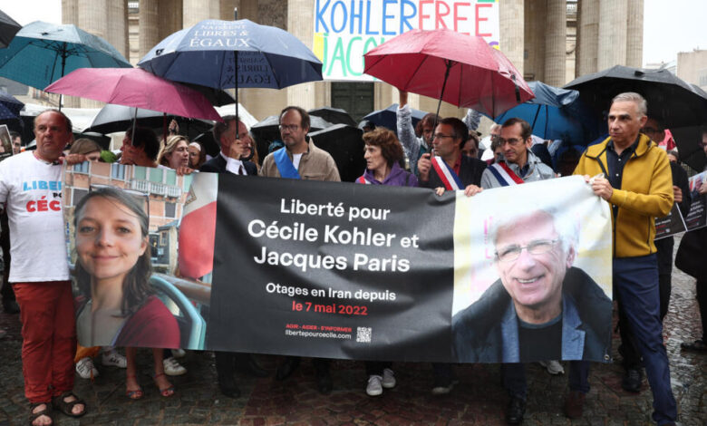 مظاهرة في باريس تطالب بـ”الإفراج الفوري” عن سيسيل كولر وجاك باري المحتجزين في إيران