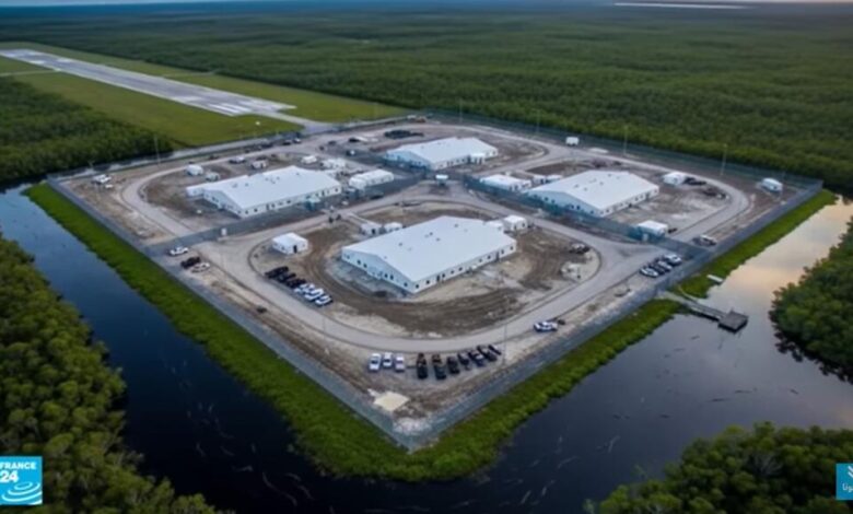 يُفتتح الثلاثاء سجن ألكاتراز في خطة رمزية ضمن سياسة الإدارة الأمريكية الحالية ضد المهاجرين في الولايات المتحدة. ويُعد هذا أول سجن في العالم تحرسه الثعابين الخطرة والتماسيح، وسيُخصص للمهاجرين غير النظاميين أو المشتبه في ارتباطهم بعصابات المخدرات. وقد شرعت السلطات المحلية في ملء المياه المحيطة بمبنى المعتقل، على أن تحيط به مجمعات استوائية شاسعة غير صالحة للسكن تعج بالتماسيح والثعابين، ما يجعل الهروب منه شبه مستحيل.