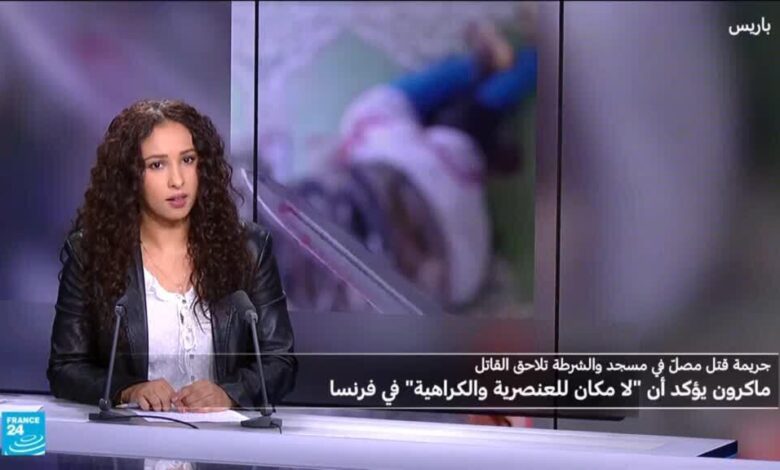 أكد الرئيس الفرنسي إيمانويل ماكرون أن “العنصرية والكراهية القائمة على الدين لن يكون لهما مكان في فرنسا مشددا على أن “حرية العبادة مصونة”…ماكرون اعرب عن “دعم الأمة” لأسرة الضحية و”لمواطني فرنسا المسلمين بعد أن قام مشتبه به بقتل أحد المصلين من مالي طعنا بالسكين كان يؤدى صلاة الجمعة في مسجد ببلدية “لاغراند كومب” قرب مدينة نيم جنوب شرقي فرنسا…المهاجم صور جريمته باستخدام هاتفه النقال وفق تصريح النيابة العامة في المدينة.