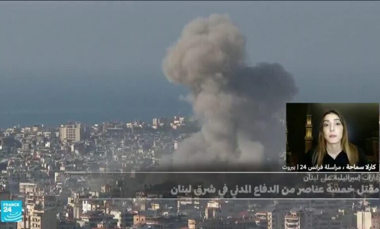 مقتل 12 شخصا على الأقل في قصف إسرائيلي على مركز للدفاع المدني ببعلبك شرق لبنان