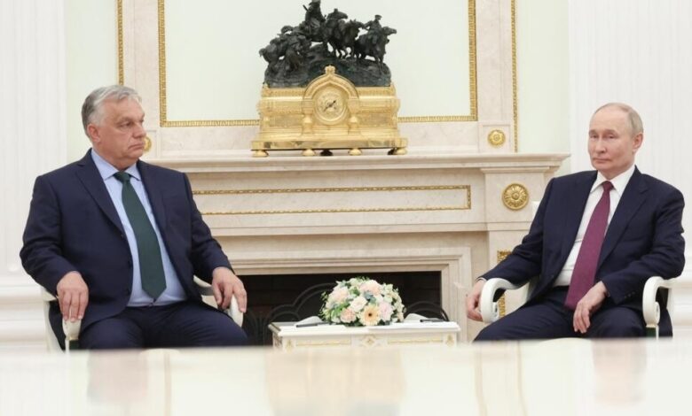 استقبل الرئيس الروسي فلاديمير بوتين رئيس الوزراء المجري فيكتور أوربان في موسكو الجمعة. ويجري أوربان هذه الزيارة بعد أن تسلمت المجر الرئاسة الدورية للاتحاد الأوروبي الإثنين. من جهته، ندد الاتحاد الأوروبي بالزيارة التي قال إنها تهدد بإضعاف موقف التكتل من الحرب في أوكرانيا، مؤكدا أنه لم يمنحه أي تفويض لإجرائها.