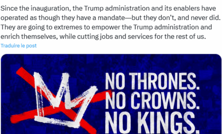 من المتوقع أن يخرج السبت، ملايين الأمريكيين إلى الشوارع في مختلف أرجاء الولايات المتحدة، احتجاجا على سياسات الرئيس دونالد ترامب. وتأتي هذه الاحتجاجات تلبية لدعوة أطلقتها حركة “لا ملوك” وبمشاركة عدة منظمات حقوقية.