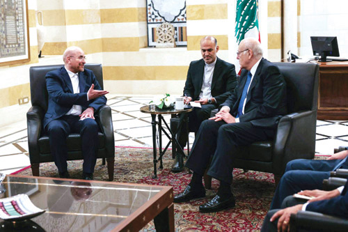 ونقلت الوكالة الوطنية للإعلام عن ميقاتي قوله خلال استقباله رئيس البرلمان الإيراني، محمد باقر قاليباف الذي وصل إلى بيروت قوله إن «أولويات الحكومة في
