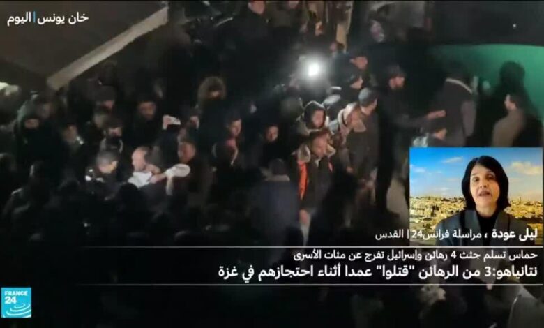 أعلن مكتب رئيس الوزراء الإسرائيلي بنيامين نتانياهو الخميس أن ثلاثا من الرهائن الأربع الذين أعادت حركة حماس جثثهم خلال الليل “قتلوا عمدا” في الأسر. وأورد المكتب في بيان “بناء على معلومات استخباراتية ومعلومات بحوزتنا، قُتل أوهاد (ياهالومي) وتساحي (عيدان) وإيتسيك في الغارات عمدا أثناء احتجازهم في غزة”. وتمّ التعرف على الجثة الرابعة التي وصلت خلال الليل على أنها لشلومو منصور الذي أعلنت إسرائيل في 11 شباط/فبراير أنه قُتل في 7 تشرين الأول/أكتوبر 2023 قبل نقل جثته إلى غزة.