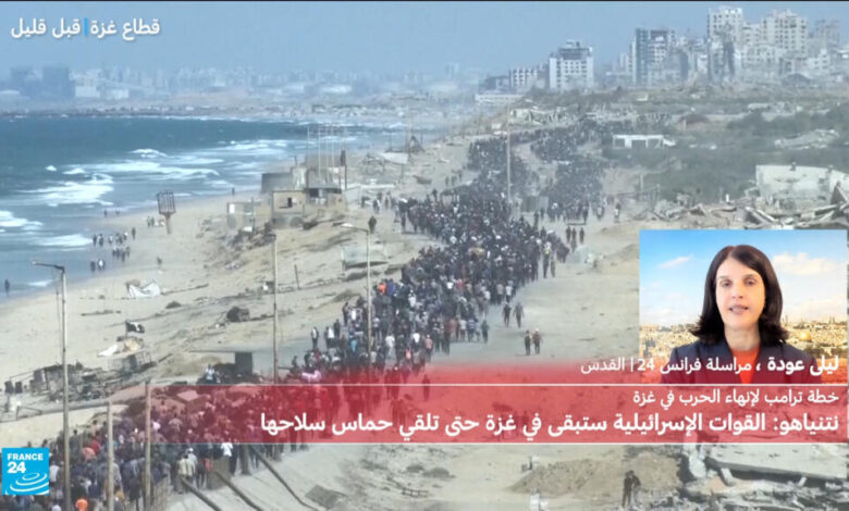 قال رئيس الوزراء الإسرائيلي بنيامين نتنياهو اليوم الجمعة إن القوات الإسرائيلية ستبقى في غزة للضغط على حركة المقاومة الإسلامية الفلسطينية (حماس) حتى تلقي سلاحها. وأضاف نتنياهو أن جميع الرهائن سيعودون خلال الأيام المقبلة.