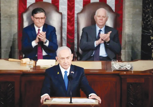 أكد رئيس الوزراء الإسرائيلي بنيامين نتنياهو أمس الأربعاء في خطاب تاريخي أمام الكونغرس الأمريكي أن تل أبيب لا تسعى إلى تهجير سكان غزة مبيناً أن الحرب ستنتهي لو استسلمت حماس.