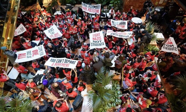 نيويورك: وقفة في برج ترامب تندد باعتقال طالب بجامعة كولومبيا مؤيد للفلسطينيين