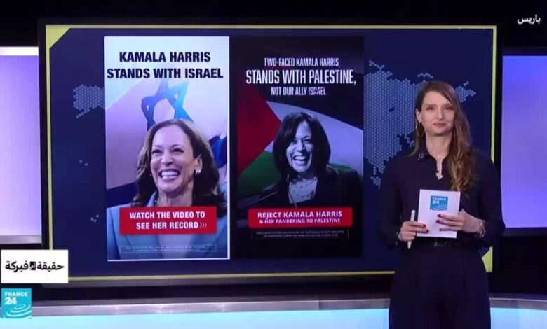 هاريس تدعم إسرائيل في إعلان وفلسطين في آخر: ما حقيقة هذه الإعلانات؟