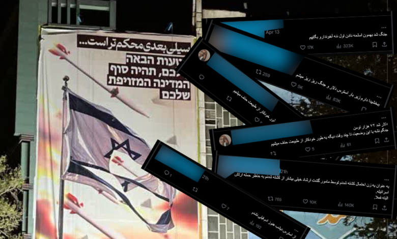 في الليلة الفاصلة بين يومي 13 و14 نيسان أبريل الجاري، شنت إيران هجوما واسعا على إسرائيل بمئات الطائرات المسيرة والصواريخ. وحتى قبل وصول طائرات مسيرة وصواريخ إلى أراضي الدولة العبرية، فإن نظام الجمهورية الإسلامية بدأ بتنظيم احتفالات في شوارع البلاد. وفي مقطع فيديو نشر قبل نصف ساعة من وصول الصاروخ الأول إلى إسرائيل، رفع مئات الأشخاص أعلاما إيرانية ورددوا “المرشد الأعلى نحن مستعدون (للذهاب إلى الحرب)’. ولكن عبر وسائل التواصل الاجتماعي، أعرب عدد كبير من الإيرانيين عن مخاوف بشأن عواقب هذه الهجوم وإمكانية اندلاع الحرب.