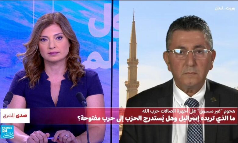 هجوم “فريد” من نوعه يطال على مدى يومين آلاف أجهزة الاتصالات التي يستخدمها حزب الله، حصيلته آلاف الجرحى وعشرات القتلى، يصفه أمين عام حزب الله بضربة “غير مسبوقة” للمقاومة، لكنه يؤكد أنها لن تؤثر على جهوزيته على أرض المعركة. فكيف حدث هذا الخرق الأمني الكبير؟ ما الذي يراد من وراء هذا الهجوم تزامنا مع توجيه إسرائيل لثقلها العسكري إلى الجبهة الشمالية؟ وما تداعياته على ضوء تصريحات الأمين العام للحزب حسن نصر الله؟ للحديث عن هذا الموضوع نستضيف في “صدى المشرق” نائب رئيس أركان الجيش اللبناني السابق عميد الركن حسن جوني.