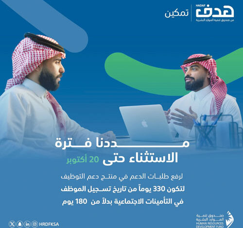«هدف»: 330 يوماً فترة السماح لرفع طلبات دعم التوظيف