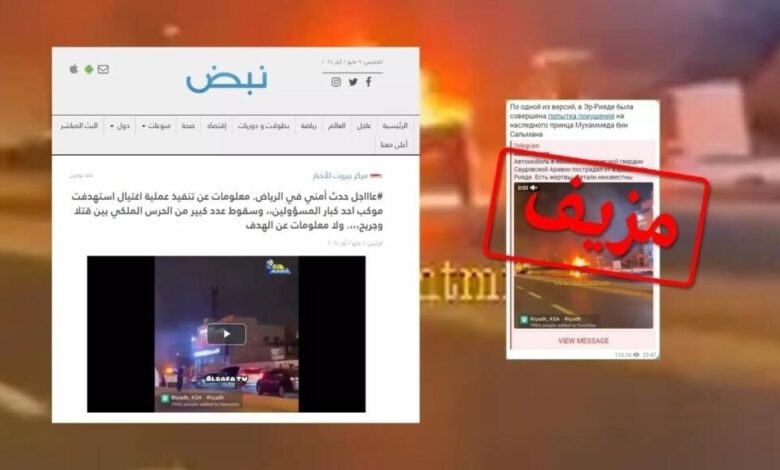 على وسائل التواصل الاجتماعي، نشر عشرات من مستخدمي الإنترنت مقطع فيديو يؤكدون أنه يظهر محاولة اغتيال استهدفت ولي العهد السعودي محمد بن سلمان. وانتشر الخبر الكاذب على نطاق واسع عبر منصات إكس (تويتر سابقا) وفيس بوك وإنستاغرام وتلغرام وبعشرات اللغات. إلا أن التقاط مقطع الفيديو يعود لما قبل عدة أشهر ولا يعدو كونه حادث سير عادي.