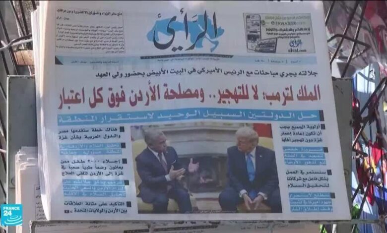 جدّد العاهل الأردني عبدالله الثاني التأكيد على “معارضته الشديدة لتهجير الفلسطينيين من غزة والضفة الغربية” وذلك بعد لقائه في البيت الأبيض الرئيس الأميركي دونالد ترامب الذي دافع مجددا عن مقترحه لتطوير القطاع بعد نقل سكانه إلى دول أخرى. ويرغب الرئيس الأميركي في أن تستقبل المملكة الهاشمية، ومصر، غالبية سكان قطاع غزة الذي دمّرته الحرب التي أشعل فتيلها هجوم حماس غير المسبوق على إسرائيل في السابع من تشرين الأول/أكتوبر 2023.