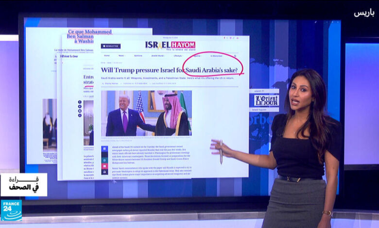 في عناوين الصحف اليوم: كيف تخدع إسرائيل الغزيين لتهجيرهم من القطاع عبر منظمة “مجد أوروبا” التي تأخذ أموالهم وتضعهم على متن رحلات جوية من دون إخبارهم بالوجهة النهائية؟ ما الذي يبحث عنه الأمير محمد بن سلمان من خلال زيارته إلى واشنطن، وهل سيحصل على مقاتلات اف-35 مقابل التطبيع؟ تحقيق في “ليبيراسيون” حول انخداع اليمين والمحافظ في أوروبا بالسجل الاقتصادي لجورجيا ميلوني في إيطاليا.