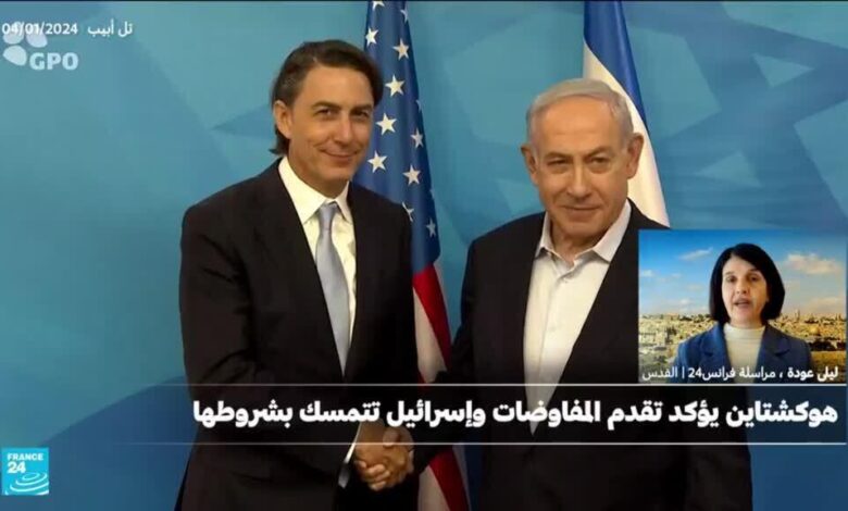 يلتقي المبعوث الخاص للرئيس الأمريكي آموس هوكستين الذي يحاول التوصل إلى اتفاق لوقف إطلاق النار بين إسرائيل وحزب الله اللبناني، رئيس الوزراء الإسرائيلي بنيامين نتانياهو الخميس، وفق ما أفاد مصدر رسمي. وأكد الناطق باسم نتانياهو عومير دوستري أنه من المقرر أن يجتمع المسؤولان في وقت لاحق الخميس.