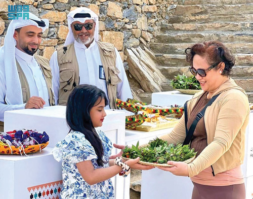 هيئة التراث تنفذ مبادرة استقبال ومعايدة زوار قرية ذي عين التراثية