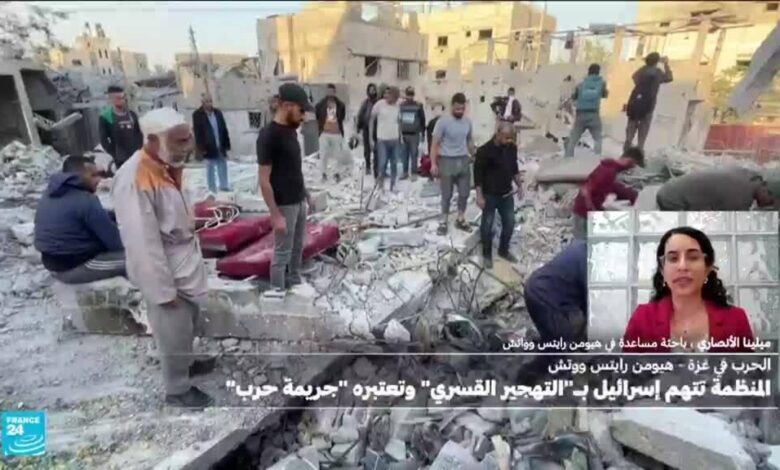 هيومن رايتس ووتش: التهجير القسري في غزة جريمة حرب ويرقى إلى التطهير العرقي