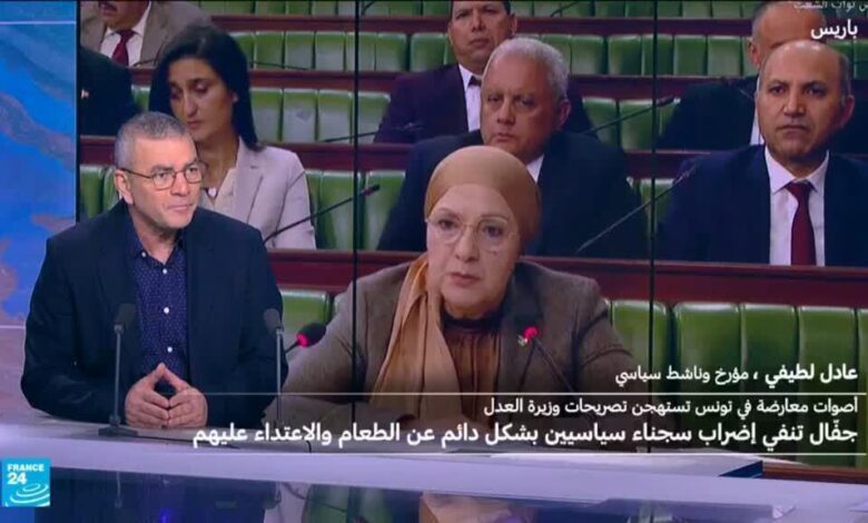نفت وزيرة العدل التونسية “ما رُوج عن تدهور الوضعيات الصحية لبعض المساجين نتيجة اضرابهم عن الطعام”. وأكدت أن “الوضعيات الصحية لكل المساجين ولكل من ادعى إضرابه عن الطعام هي وضعيات محل متابعة صحية مستمرة”.