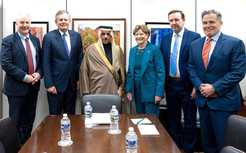 التقى صاحب السمو الأمير فيصل بن فرحان بن عبدالله وزير الخارجية، في مدينة واشنطن أمس، نائبة رئيس لجنة العلاقات الخارجية في مجلس الشيوخ الأمريكي السيناتور جين شاهين، وذلك ضمن زيارة سموه الرسمية إلى الولايات المتحدة الأمريكية.