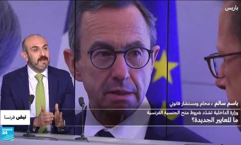 الجنسية على اساس الاستحقاق واثبات الانتماء الحقيقي الى الامة الفرنسية عنوان التعديلات التي فرضها وزير الداخلية الفرنسي على شروط الحصول على الجنسية في فرنسا. تعديلات تركز على احترام القانون الفرنسي ومنع الاشخاص الذي دخلوا الى فرنسا بشكل غير قانوني من تقديم طلب للجنسية اضافة إلى اتقان اللغة والثقافة بمستويات عليا والاندماج المهني مع الحصول على عمل طيلة خمس سنوات بشكل متواصل. حول الموضوع معنا المحامي والمستشار في قضايا الهجرة باسم سالم.