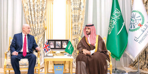 التقى صاحب السمو الملكي الأمير خالد بن سلمان بن عبدالعزيز وزير الدفاع، في الرياض، امس، معالي وزير الدفاع البريطاني جون هيلي.