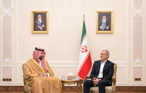 بتوجيه من القيادة -أيدها الله- التقى صاحب السمو الملكي الأمير خالد بن سلمان بن عبدالعزيز وزير الدفاع، في القصر الرئاسي بالعاصمة الإيرانية طهران الخميس، فخامة الرئيس الدكتور مسعود بزشكيان رئيس الجمهورية الإسلامية الإيرانية.