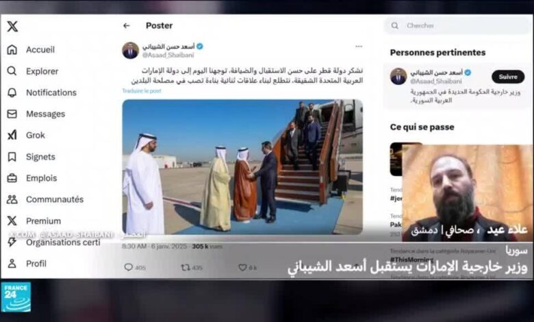 وزير خارجية الإمارات يستقبل نظيره السوري. يشرح علاء عيد، صحافي في دمشق، رغبة الإدارة السورية الجديدة في التوصل إلى السلم الأهلي.