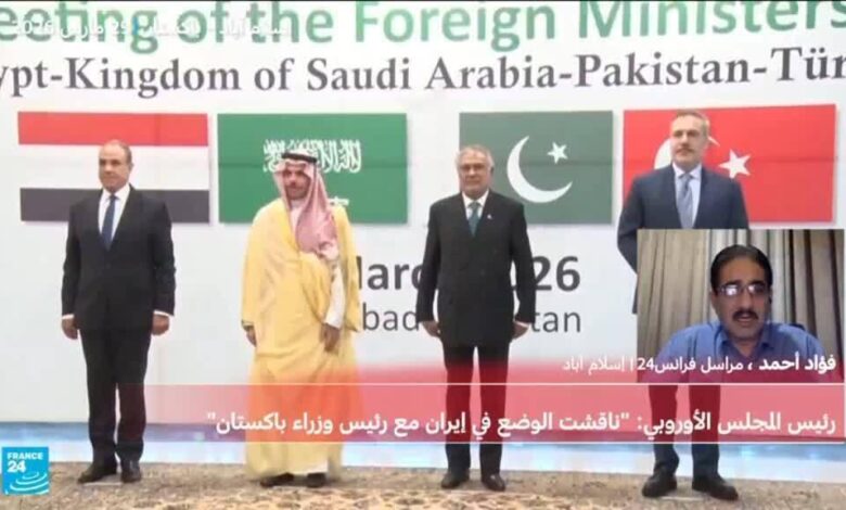 ذكر وزير الخارجية الباكستاني محمد إسحق دار عقب محادثات بين وزراء خارجية المنطقة أنهم ناقشوا السبل الممكنة لإنهاء الحرب فيالمنطقة بشكل عاجل ودائم فضلا عن إمكان عقد محادثات أمريكية إيرانية في إسلام اباد. وقالت باكستان، إنها تستعد لاستضافة “محادثات هادفة” في الأيام المقبلة بهدف إنهاء الحرب. ولم يتضح بعد ما إذا كانت الولايات المتحدة وإيران قد وافقتا بالفعل على الحضور. وقال أنتونيو كوستا رئيس المجلس الأوروبي إنه أجرى “اتصالا جيدا” اليوم مع رئيس وزراء باكستان شهباز شريف لبحث الوضع في إيران.