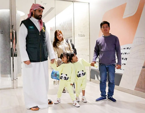 إنفاذًا لتوجيهات خادم الحرمين الشريفين الملك سلمان بن عبدالعزيز آل سعود، وصاحب السمو الملكي الأمير محمد بن سلمان بن عبدالعزيز آل سعود ولي العهد رئيس مجلس الوزراء -حفظهما الله- وصل إلى مطار الملك خالد الدولي بالرياض، أمس، التوأم الملتصق الفلبيني «كليا وموريس آن» برفقة ذويهما،