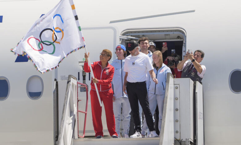 وصول العلم الأولمبي إلى لوس أنجلس الأمريكية التي ستستضيف دورة 2028