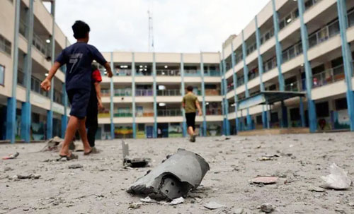 قتل 16 شخصا على الأقل أمس السبت في قصف إسرائيلي لمدرسة تؤوي نازحين فلسطينيين في مدينة النصيرات وسط قطاع غزة.