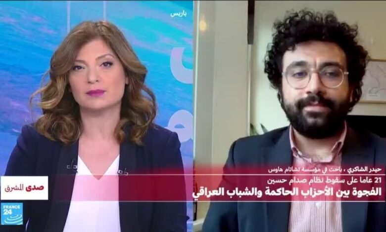 حلقة “صدى المشرق” وجهتنا اليوم العراق، تستضيف فيهارجاء مكي الباحث في مؤسسة “تشاتام هاوس” حيدر الشاكري، للحديث عن الفجوة بين الأحزاب الحاكمة والشباب العراقي بعد 21 عاما على سقوط نظام صدام حسين، كيف يتطلع الشباب العراقي للمستقبل ولماذا بقي خارج المشهد السياسي على الرغم من التغيير الجذري في البلاد؟