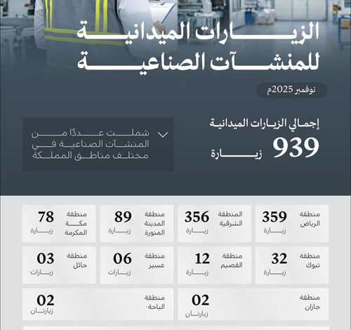 نفذت وزارة الصناعة والثروة المعدنية، ممثلة في وكالة الخدمات والامتثال الصناعي 939 زيارة ميدانية على المنشآت الصناعية في المملكة خلال شهر نوفمبر الماضي، لمتابعة التزام المصانع بالاشتراطات والمتطلبات اللازمة لممارسة النشاط الصناعي، واتخاذ الإجراءات النظامية بحق المنشآت المخالفة،