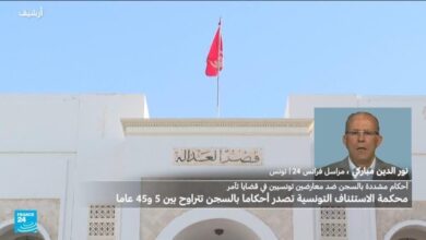 تونس: محكمة الاستئناف تصدر أحكاما بالسجن تصل إلى 45 عاما على معارضين