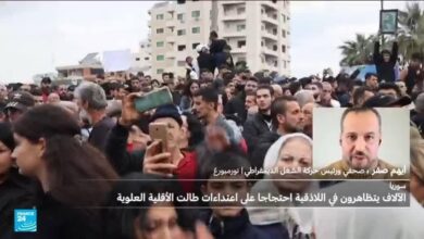 تظاهر الآلاف الثلاثاء في مدينة اللاذقية الساحلية ومناطق أخرى ذات غالبية علوية في سوريا، تنديدا باعتداءات استهدفت هذه الأقلية في الآونة الأخيرة، وفق ما أفاد مراسلو وكالة فرانس برس. منذ الإطاحة بحكم الرئيس المخلوع بشار الأسد قبل نحو عام، يتعرض أبناء الطائفة التي ينحدر منها لهجمات متكررة، وقد قتل المئات منهم في حوادث وقعت في مارس/آذار الماضي بعدد من قرى الساحل السوري. وردّد المتظاهرون الذين احتشدوا في دوار الأزهري وسط اللاذقية هتافات من بينها “الشعب السوري واحد”.. “يا عالم اسمع اسمع.. الشعب العلوي ما بيركع”. ورفع آخرون لافتات تطالب بـ “الافراج عن المعتقلين”.